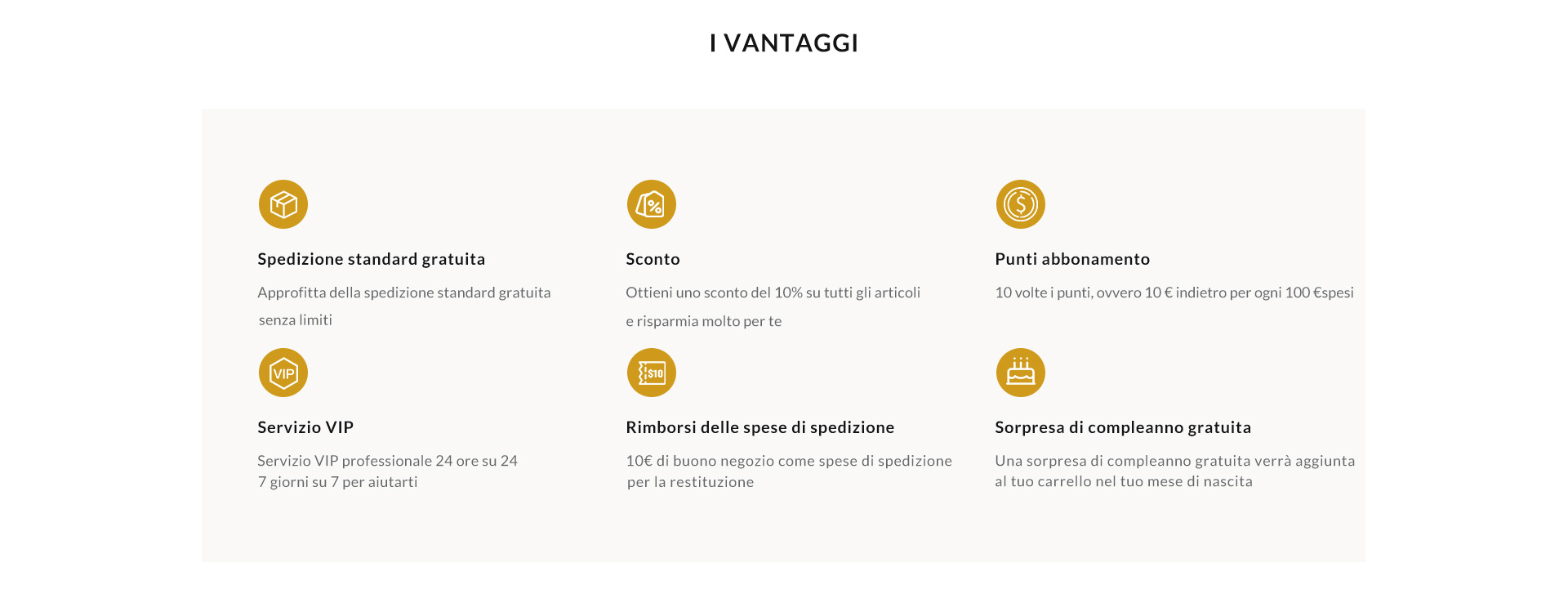 Per i membri Prime, rimborsa automaticamente 10€ di credito negozio come spese di spedizione per il tuo primo reso o cambio, come da richiesta.